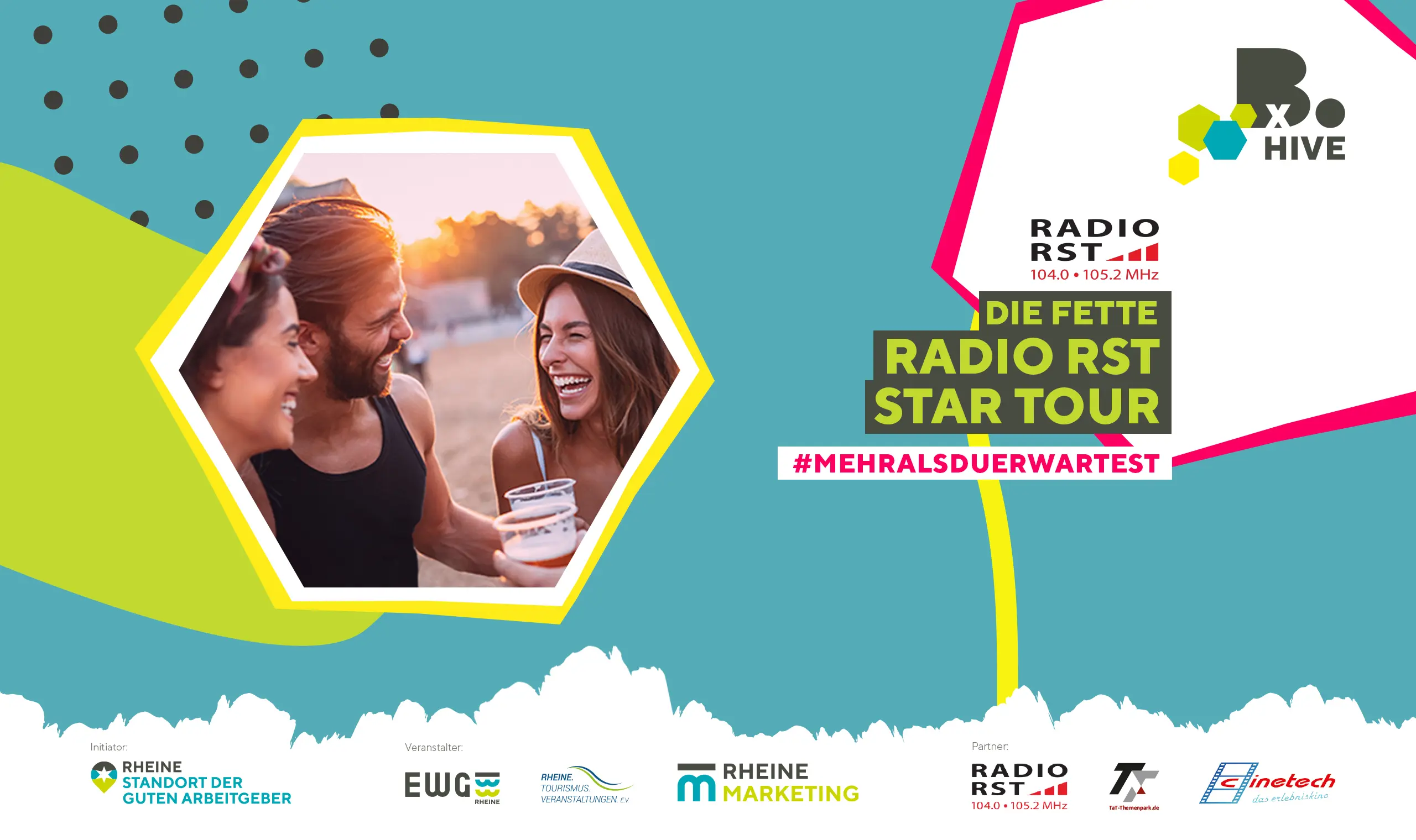 Diese einzigartige OPEN-AIR-Location würzt RADIO RST jetzt gleich zu Beginn mit einer richtig fetten RADIO RST STAR TOUR. Darauf kann man sich schon heute richtig freuen, denn den Machern rund um RADIO RST, RTV e.V. und EWG für Rheine mbH ist es gelungen, internationale Künstler in die zweitgrößte Stadt des Münsterlandes zu holen. Stolz wurde heute verkündet, dass am 23. Mai ab 18:00 Uhr das B.HIVE mit Alma, Tom Gregory und Band sowie der Newcomer Band JEREMIAS abhebt.