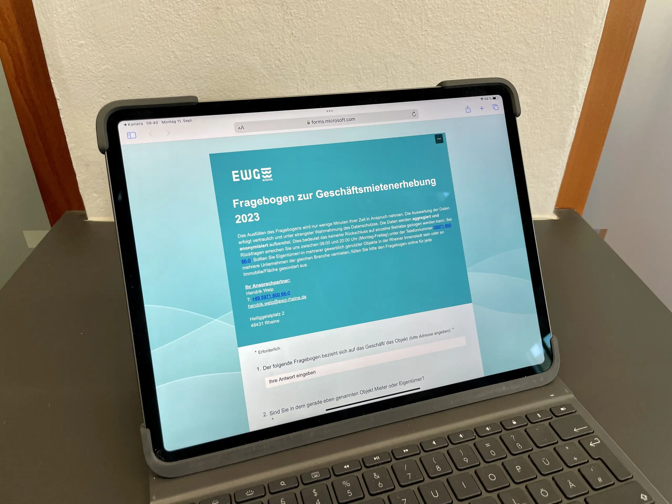 Die EWG Rheine bittet alle Befragten um Unterstützung. Der Fragebogen kann bis zum 3. Oktober 2023 online ausgefüllt oder per E-Mail an die EWG zurückgeschickt werden. Selbstverständlich erfolgt die Auswertung der Daten vertraulich und unter strenger Wahrung des Datenschutzes. Die Daten werden aggregiert und anonymisiert aufbereitet, sodass ein Rückschluss auf einzelne Betriebe ausgeschlossen ist. Allen teilnehmenden Befragten werden die Ergebnisse der Erhebung im Nachgang zur Auswertung auf Wunsch kostenlos zur Verfügung gestellt. Bei Rückfragen erreichen Sie die EWG unter der Rufnummer 05971 80066-0.
