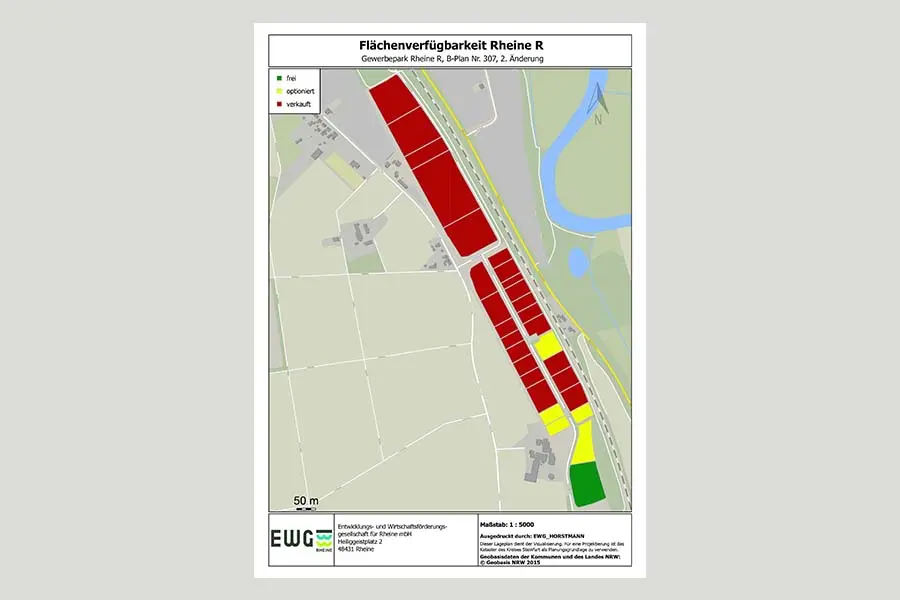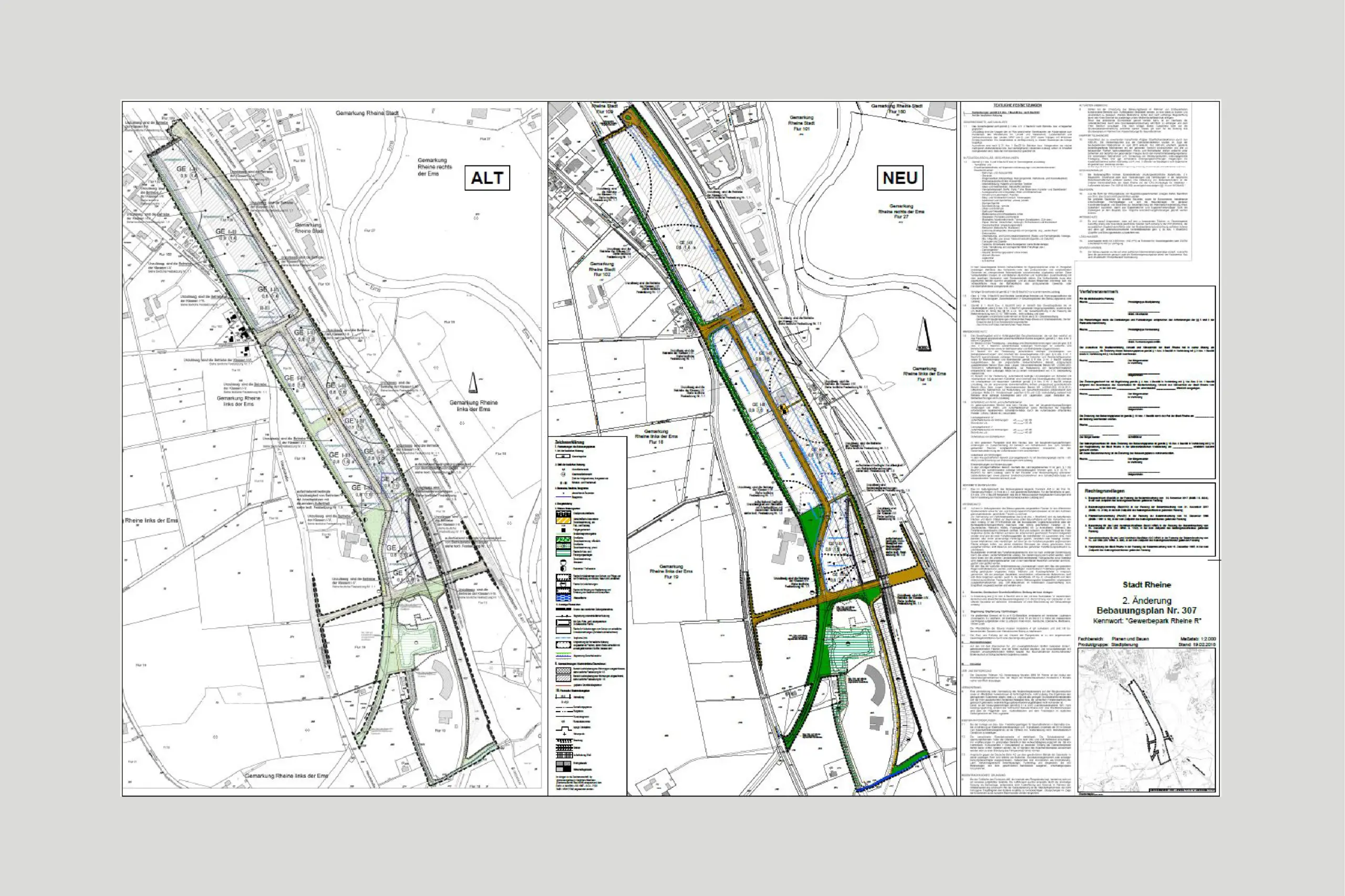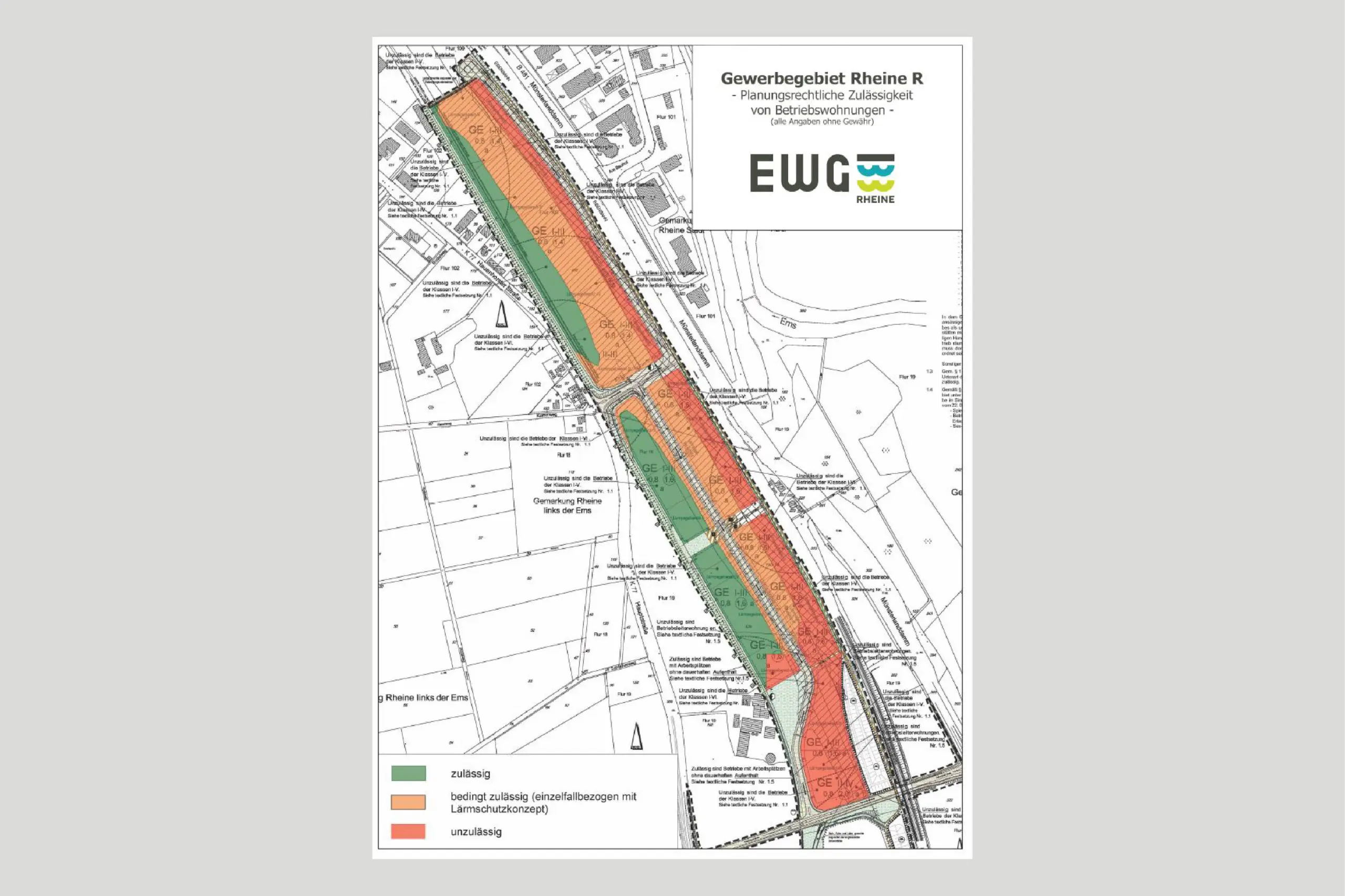 Im Süden von Rheine, zwischen der Innenstadt und den Stadtteilen Mesum und Hauenhorst, liegt das Gewerbegebiet Rheine R. Aus dem Areal des ehemaligen Rangierbahnhofs wird ein qualifizierter, kleinteilig strukturierter Gewerbepark für unterschiedliche Nutzungen: