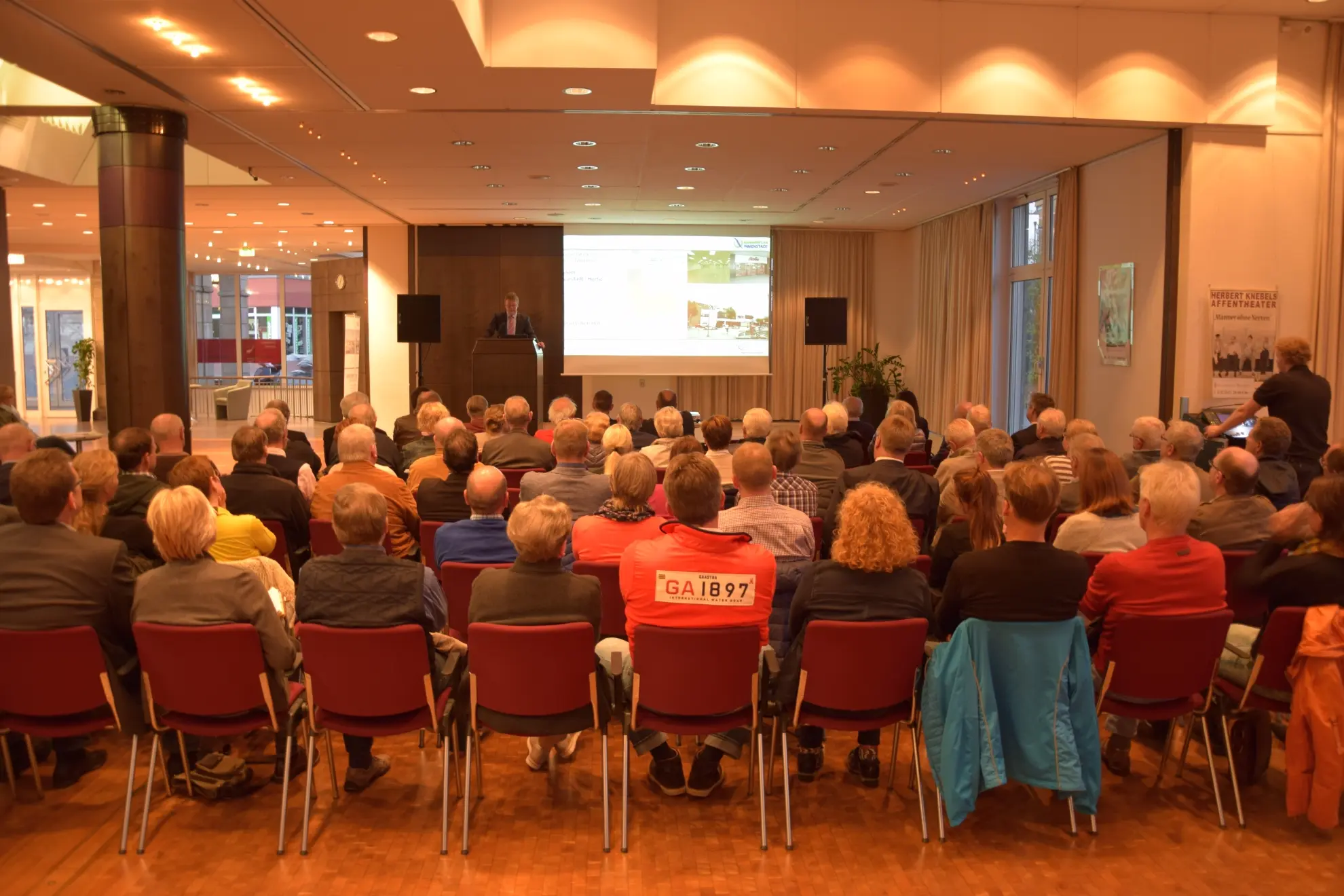 Anschließend beginnt mit einem Kurzvortrag zum Thema „Fassadenbegrünung“ von Stefan Zeller vom Bundesverband GebäudeGrün e.V. die Vorstellung verschiedener innerstädtischer Förderprogramme. In diesem Rahmen erhalten die Interessierten auch Informationen über das Fassadenprogramm, den „Quartiersarchitekten“, den Verfügungsfonds Rahmenplan Innenstadt sowie den Verfügungsfonds Anmietungen, mit denen private Investitionen finanziell unterstützt werden.