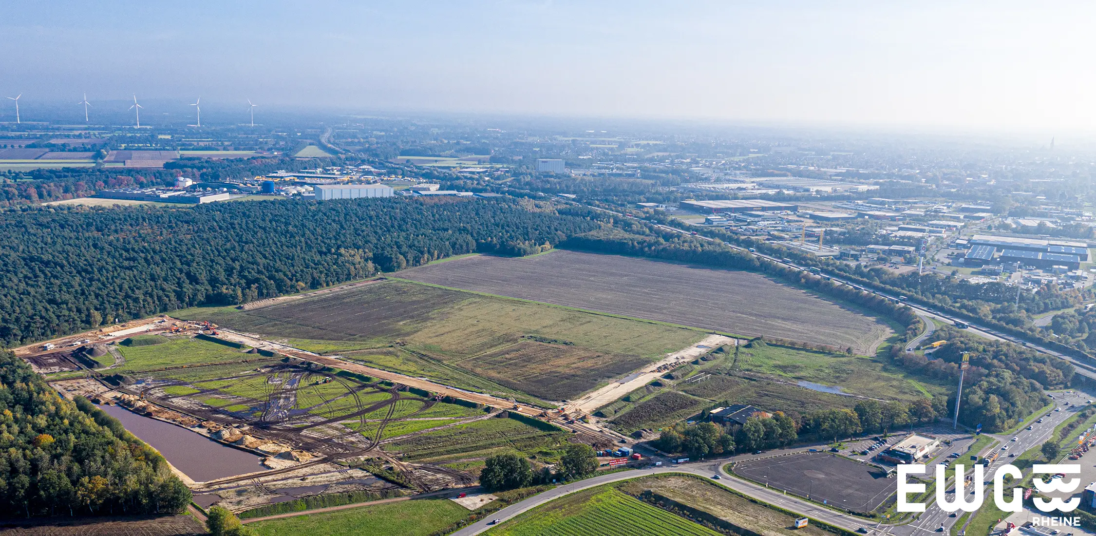 Große Fortschritte machen die erforderlichen Erschließungsarbeiten des Industriegebietes, die seit Wochen auf vollen Touren laufen. Von den jüngsten Entwicklungen konnten sich Vertreter der Schwarz Produktion persönlich überzeugen, die auf Einladung der EWG – Entwicklungs- und Wirtschaftsförderungsgesellschaft für Rheine mbH in die Emsstadt gekommen waren. Ingo Niehaus, neuer Geschäftsführer der EWG, begrüßte die Vertreter im Wirtschaftskontor und informierte sich über den aktuellen Planungsstand und die jüngsten Projektfortschritte. Die Teilnehmer sprachen insbesondere über das weitere Vorgehen und über die anstehende Bauantragsphase.