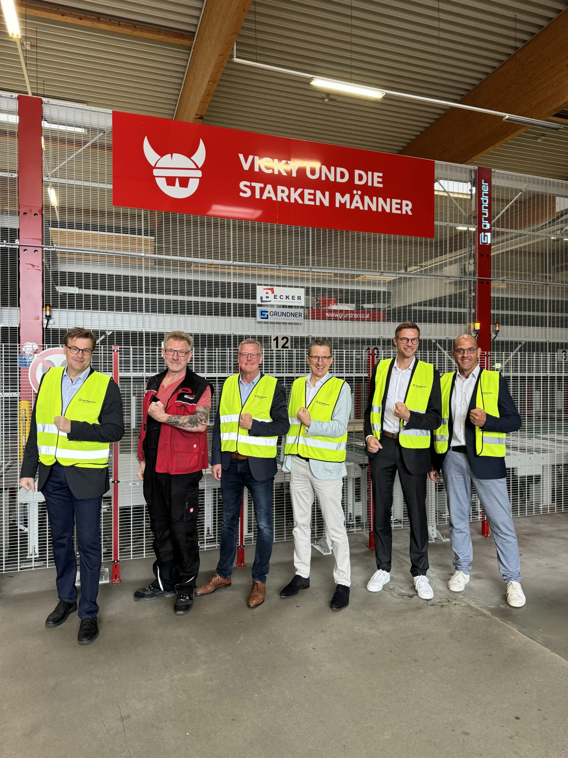 Während eines gemeinsamen Rundgangs informierte Dirk Waterkamp über die aktuellen Entwicklungen und Herausforderungen des Unternehmens. Ein besonderer Fokus lag auf der erfolgreichen Implementierung des neuen Flächenlagers, das den Lagerbetrieb durch moderne Automatisierungstechniken optimiert. Doch trotz der fortschreitenden Digitalisierung betonte Dirk Waterkamp die Bedeutung der Menschen im Betrieb: „Waterkamp ist ein digitalisierter Holzhandel mit ganz viel Mensch“, sagte er.