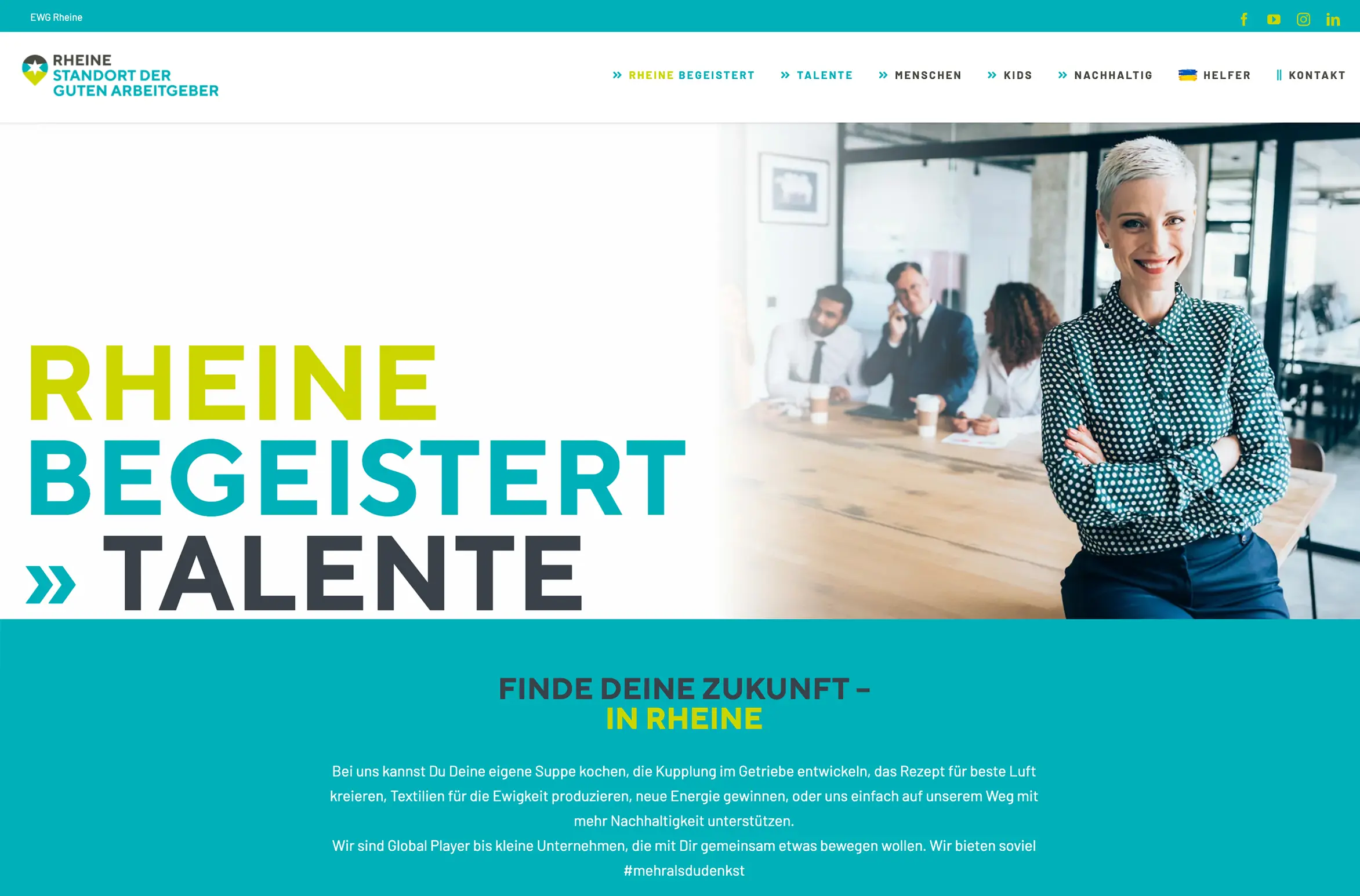 Seit heute ist Sie online – die neue Seite der Initiative „Rheine-Standort der guten Arbeitgeber“. Mit ganz neuem look and feel und der Adresse www.rheine-begeistert.de soll diese neue Seite insbesondere neue Fachkräfte für den Standort und die Unternehmen begeistern, aber auch die ansässigen Fachkräfte für den Standort neu gewinnen. Mit Hilfe der Unternehmensgesichter und deren Überzeugung zum Standort und jeweiligen Unternehmen wird der Beweis angetreten, dass die Mischung einfach überzeugend ist. Wer auf der Suche nach einem Job ist, findet bei Rheine-begeistert/Talente eine Vielzahl spannender Angebote. Abwechselung bietet dabei der rollierende Slider, der die Unternehmen ganz persönlich vorstellt. Neben vielen Angeboten auch zum Standort Rheine und zum Thema Kinderbetreuung in der „kids-company“ der Kreishandwerkerschaft Steinfurt-Warendorf findet der Besucher auch die Hilfegesuche ehrenamtlicher Institutionen zur Unterstützung Geflüchteter Bürgerinnen/Bürger aus der Ukraine. Die Idee dahinter, viele möchten unterstützen, wissen aber nicht genau wie. Mit einem virtuellen „schwarzen Brett“ werden diese Unterstützungsbedarfe direkt auch in die Unternehmen und Mitarbeiter „gespielt“. Ziel ist es, Helfen „spürbar zu machen“. So befinden sich in der Initiative rund 16.000 Mitarbeiter, das sind 32.000 helfende Hände und 16.000 kreative Köpfe, die hier gemeinsam anpacken können.