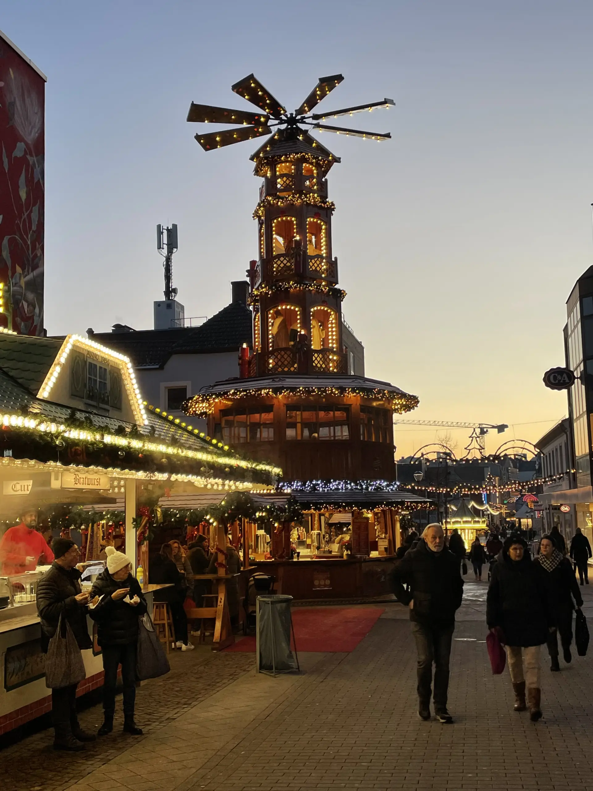 Das Highlight des Innenstadtvergnügens erwartet Euch dann auf dem Trakaiplatz, wo Euch mit seinen beeindruckenden 18 Metern die größte Pyramide des Münsterlandes staunen lässt. Der integrierte Glühweinstand wärmt Euch mit heißen Getränken und lädt zum Verweilen ein.