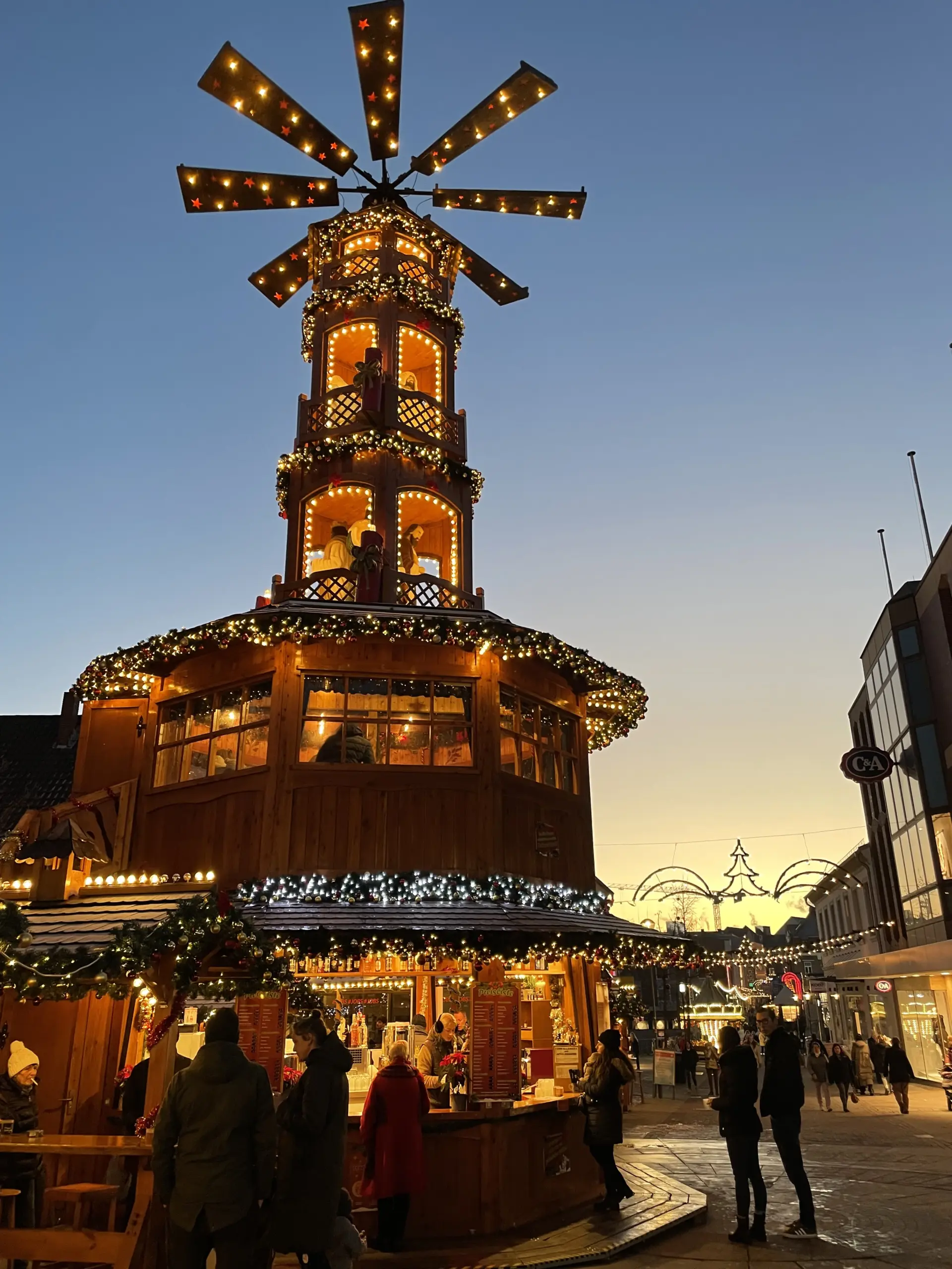 Ein besonderer Blickfang ist erneut die größte Glühweinpyramide des Münsterlands: Mit stolzen 18 Metern Höhe, einer gemütlichen Gaststube und einer Aussichtsplattform ist sie das Herzstück auf dem Trakaiplatz. Dort sorgt ein abwechslungsreiches Bühnenprogramm über den gesamten Veranstaltungszeitraum hinweg für weihnachtliche Unterhaltung.