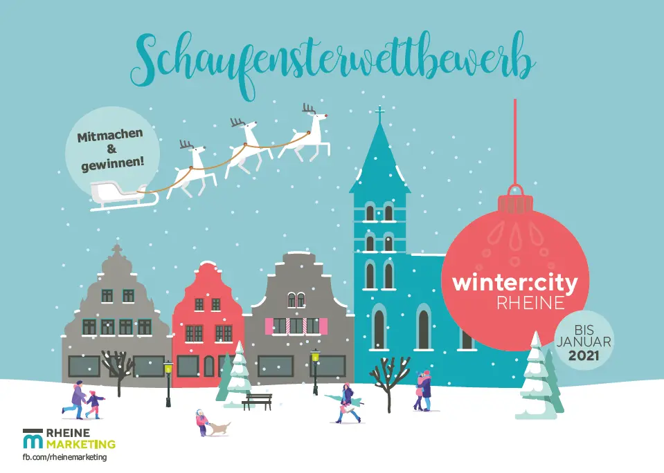 Es wird gemütlich in der Rheiner Innenstadt. 16 Einzelhändler haben sich im Rahmen der winter:city auf den Weg gemacht, um euch zu zeigen, wie schön die eigenen Schaufenster in der Weihnachtszeit sind. Ob kunstvoll winterlich, lustig oder traditionell mit Krippe – den Einzelhändlern sind hierbei keine Grenzen gesetzt. Noch bis zum 17.12.2020 dürft ihr für euer persönliches Lieblingsschaufenster voten und dabei tolle Preise gewinnen. Zusammen mit einer Fachjury wird dann ab dem 18. Dezember das Gewinnerschaufenster gekürt.