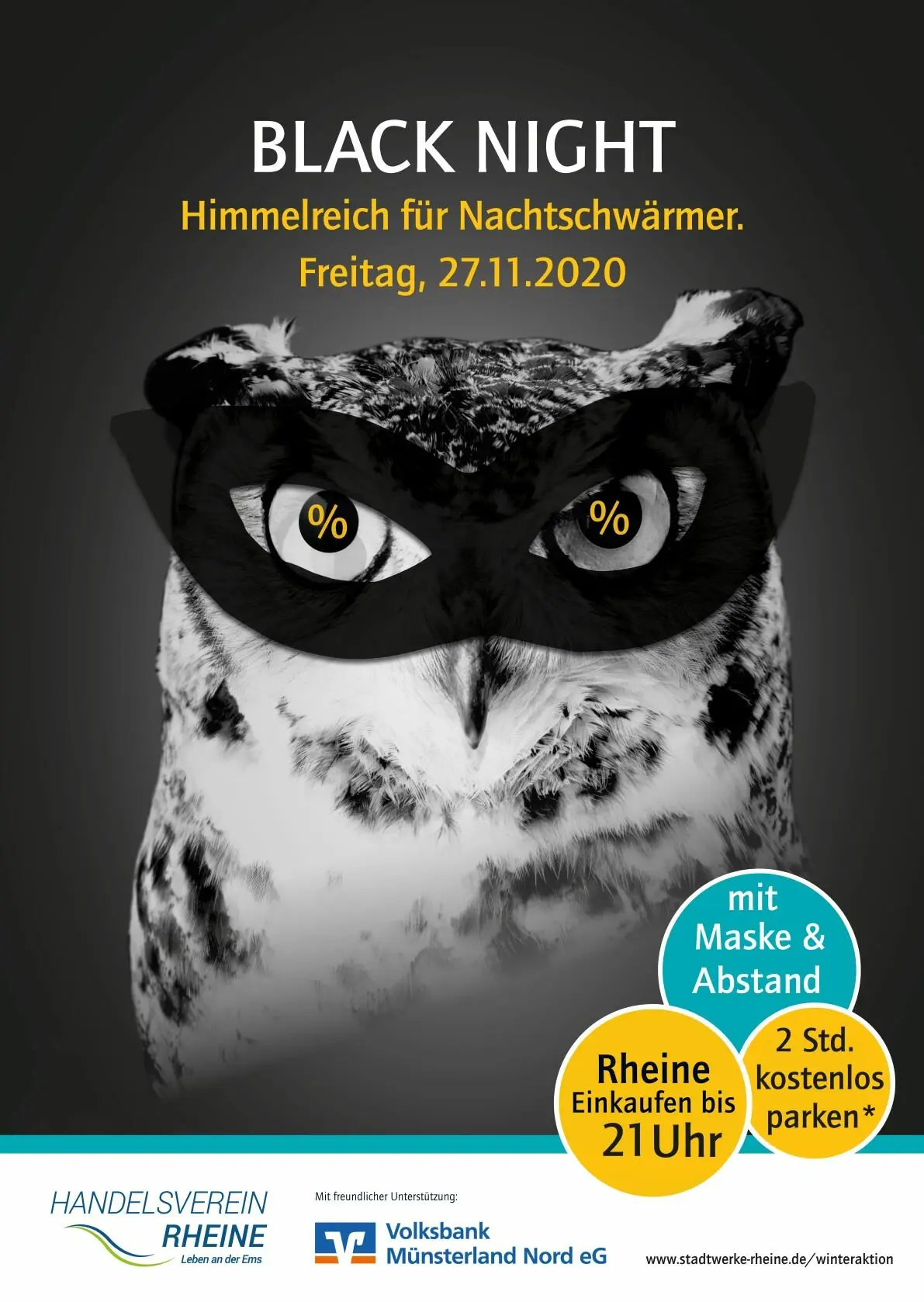 Auch in diesem Jahr füllen besondere Aktionen und Angebotsschilder in den Schaufenstern wieder die Rheiner Innenstadt mit Farbe. Die „Black Night“ in Rheine ermöglicht ein entspanntes und dennoch sicheres Shoppingerlebnis – mit Beachtung der AHA Regel – bis 21 Uhr.