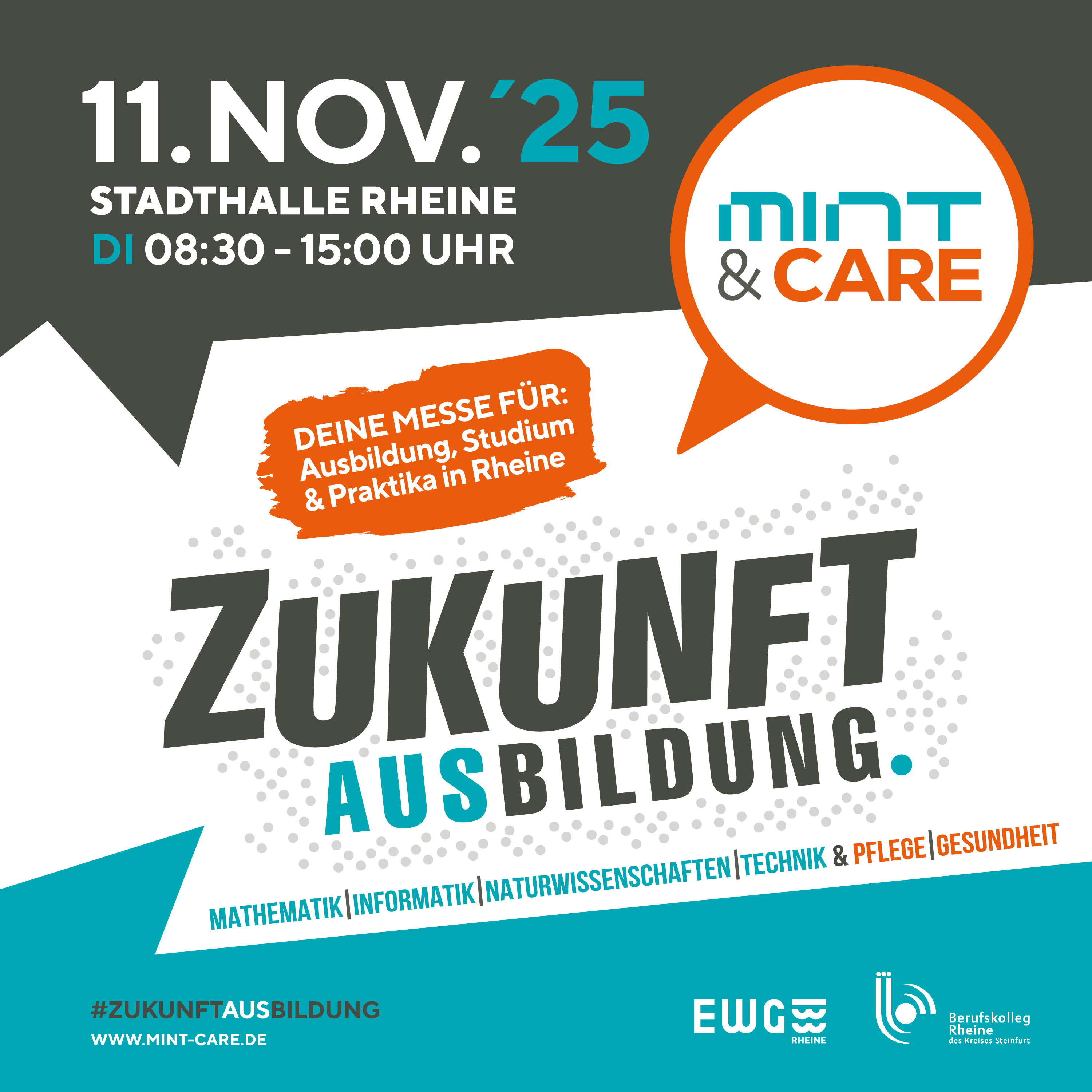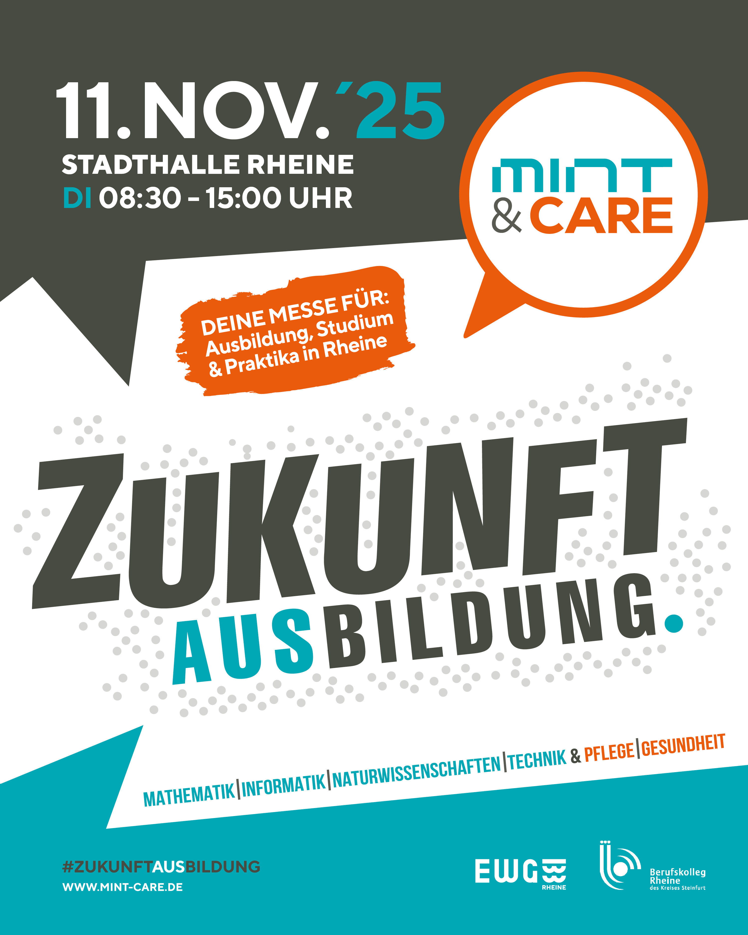 Am 12. November 2024 fand der MINT & CARE – Tag in der Stadthalle Rheine statt, welcher erneut von der EWG – Entwicklungs- und Wirtschaftsförderungsgesellschaft für Rheine mbH in Kooperation mit dem Berufskolleg Rheine organisiert und realisiert wurde.