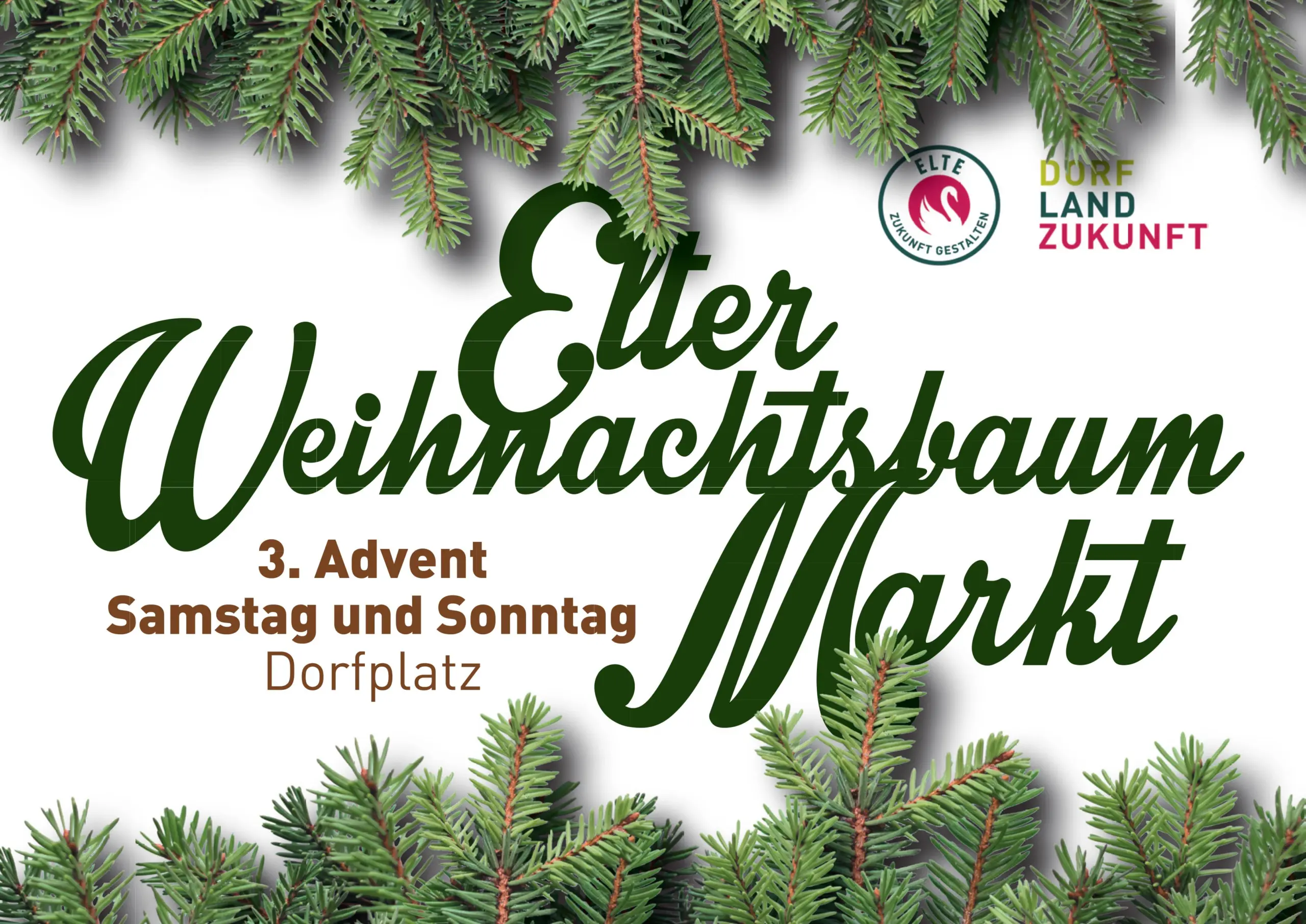 Elter Weihnachtsbaummarkt am Samstag, 10.12.2022 von 14.00 Uhr bis 24.00 Uhr und Sonntag von 11.00 Uhr bis 18.00 Uhr mit Bühnenprogramm, kulinarischen Köstlichkeiten, Besuch des Nikolauses, Weihnachtsbaumverkauf, Baumversteigerung, u.v.m.
